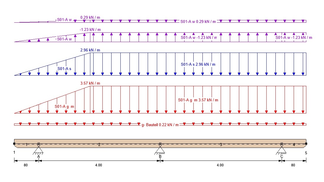 Reprendre des charges provenant d'autres positions statiques n'est pas nouveau dans DC-Statik. Souvent, les mêmes charges doivent être reprises plusieurs fois, par exemple dans le calcul d’un faîtage, les charges provenant des chevrons, gauche et droit. Dans le cas d'une croupe avec deux arêtiers, la charge doit être réduite pour obtenir des résultats plus réels et plus économiques puisque dans ce cas, la reprise de charge des chevrons est une charge triangulaire.