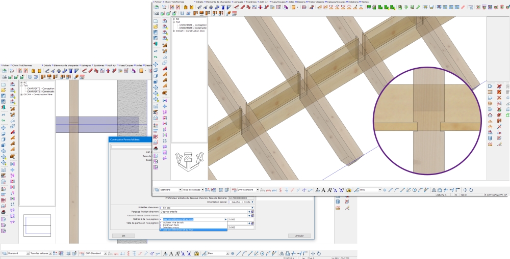 - Facilitez la création de ces composants quel que soit leur orientation. Par exemple, un chevronnage en positionnant le plan de construction dans le sens de la pente.
