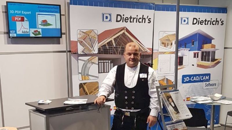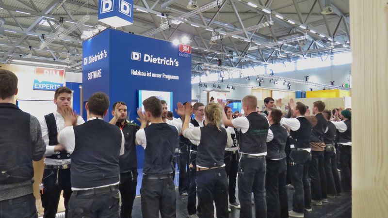 Vom 20.-23. Februar fanden zeitgleich die zwei Messen DACH+HOLZ und bautec statt. An vier Messetagen zeigten sich alle Aussteller von ihrer besten Seite. An der Masse und dem regen Interesse der Besucher war der Aufwärtstrend in der Holzbaubranche deutlich spürbar. Laut dem Veranstalter waren über 45.000 Besucher und 576 Aussteller aus 35 Ländern auf dem Kölner Messegelände präsent. Ein Publikumsmagnet am Stand bei Dietrich’s war neben den vielen Produkt-Highlights und Neuheiten, wie den Lösungen für BIM im Holzbau, der neuen V18, dem 3D-PDF-Modul, jeweils ein Zimmererklatsch der Meisterklasse vom Bundesbildungszentrum aus Kassel und von der Meisterschule Kaiserslautern. Zufrieden und mit vollen Auftragsbüchern ging es dann am Freitag zurück zum Tagesgeschäft.