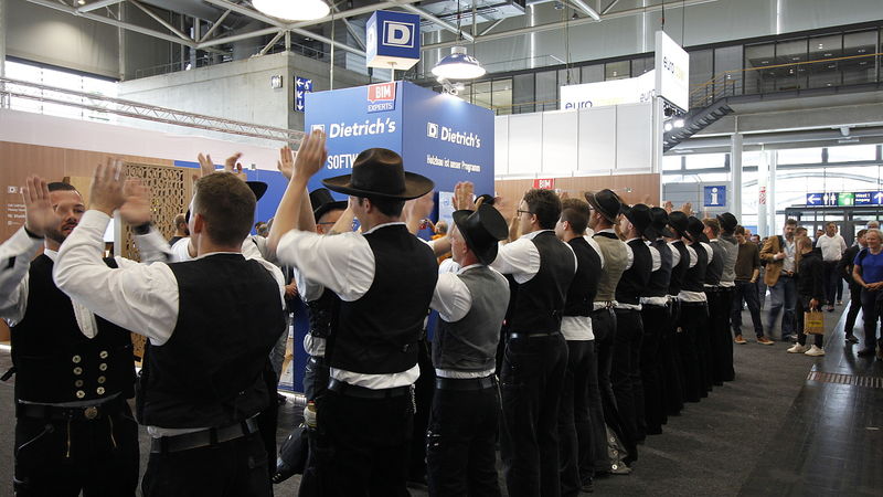 Aber nicht nur die digitalen Werkzeuge von Dietrich’s waren Gesprächsstoff auf unserem Messestand, die Unterhaltung kam auch nicht zu kurz. Ein herzliches Dankeschön geht an das BUNDESBILDUNGSZENTRUM DES ZIMMERER- UND AUSBAUGEWERBES das uns mit der Dietrich’s Meisterklasse besuchte und uns mit einem Zimmererklatsch die Tradition des Berufsstands aufgeführt hat.