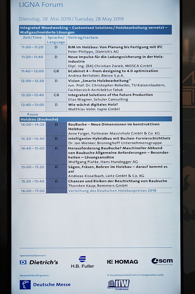 Im Rahmen des LIGNA.Forums unter dem Motto eines der drei LIGNA-Fokusthemen „Integrated Woodworking“ hat Peter Philipps, Leiter Produktentwicklung bei Dietrich’s hier aus erster Hand berichtet, was wir unter horizontaler Vernetzung der Wertschöpfung verstehen. Und noch viel wichtiger ist, dass er aufzeigen konnte, welche Expertise zum Thema BIM in der Dietrich’s Software steckt.