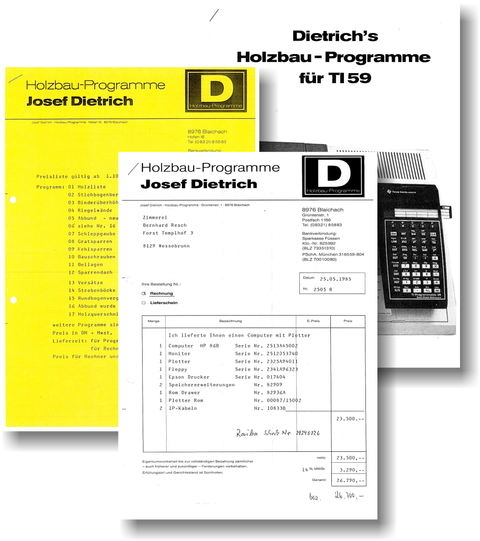 Die gemeinsame Geschäftsbeziehung begann am 25. Mai 1985 mit einem Auftrag für ein Hardware Komplettsystem und Dietrich’s Abbund-Programme im Wert 26.790 DM.
