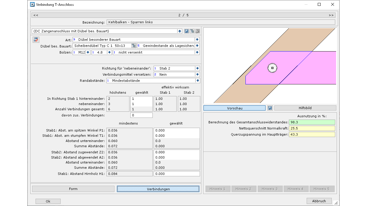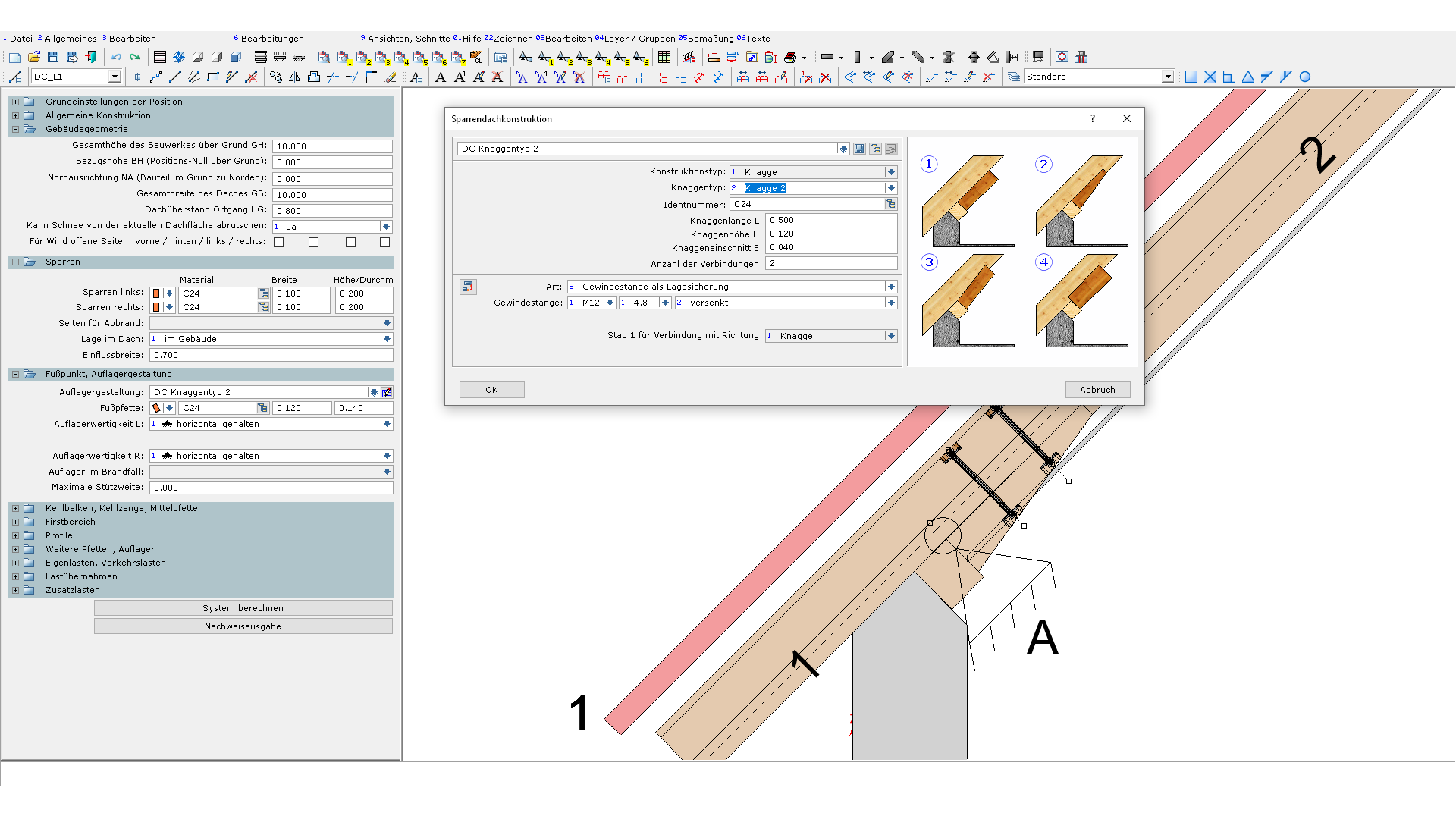 Per la costruzione di tetti a controcatene e di tetti a puntoni, potrete definire diversi tipi di gattello. Anche per il collegamento con gattello, il calcolo verrà eseguito in questa voce, insieme a tutti i mezzi di unione.