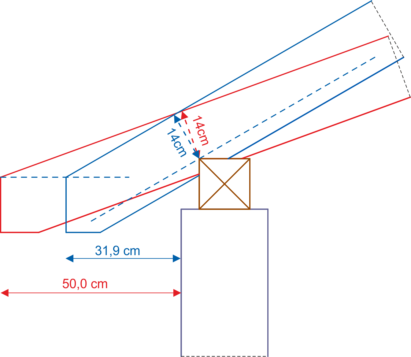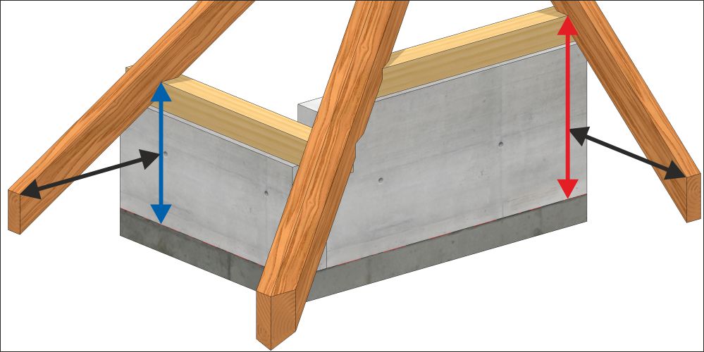Dla dachów o różnych kątach nachylenia połaci taki przypadek wymaga wyznaczenia rzędnej murłaty na podrzędnej stronie dachu. Połać dachu o większym kącie nachylenia będzie miała murłatę wyżej niż połać dachu o mniejszym kącie nachylenia.